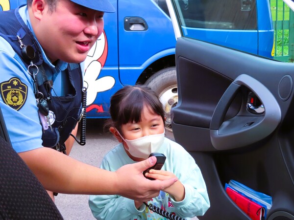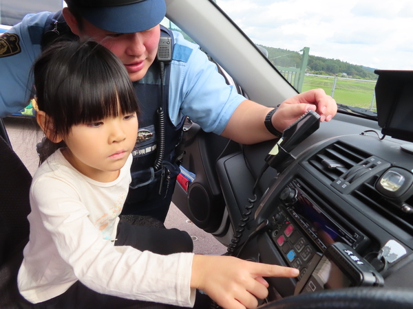 パトカーにあるいろんなツールで、楽しみながら学ぶことができました♪