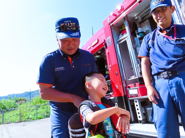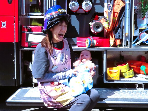 火災訓練を終えたあとは消防士さんとのふれあいコーナー♪
