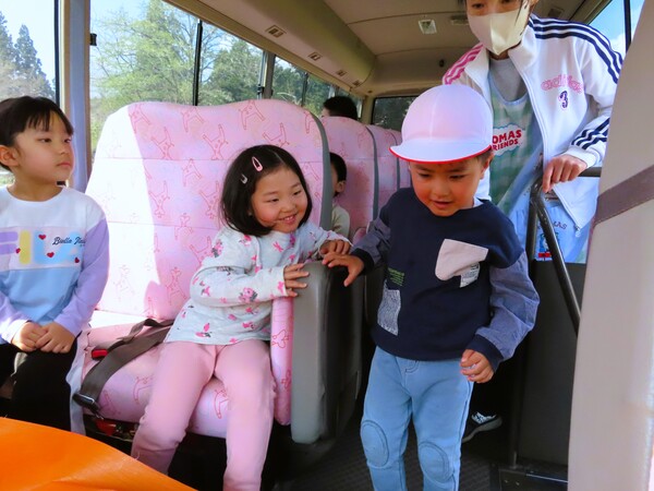 「バスの乗降の仕方、車内でのお約束、車内に取り残された時は」を主なテーマに訓練しています。
